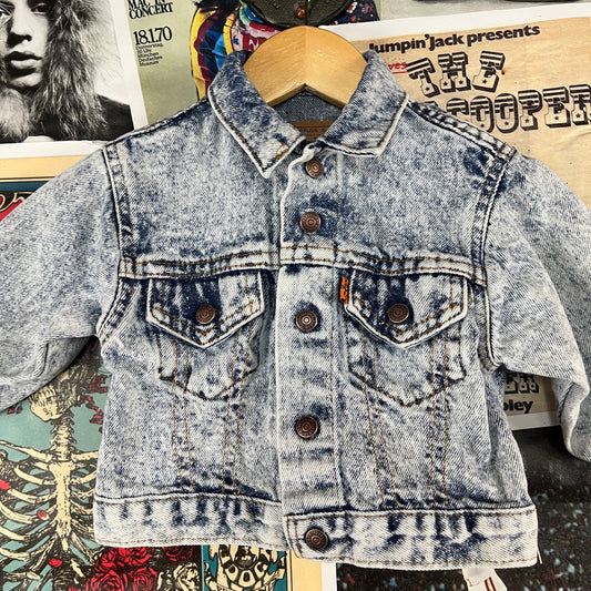 Vintage Toddler Boy Girl Kids 80s-90s Light Acid Wash Levis Orange Tab USA Denim Jean Trucker Jacket 12-18 Months