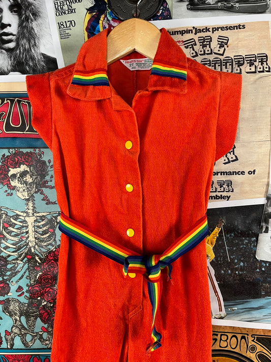 Vintage Toddler Kids Retro 70s Orange Rainbow Health-tex Corduroy Belted Jumpsuit 18-24 Months