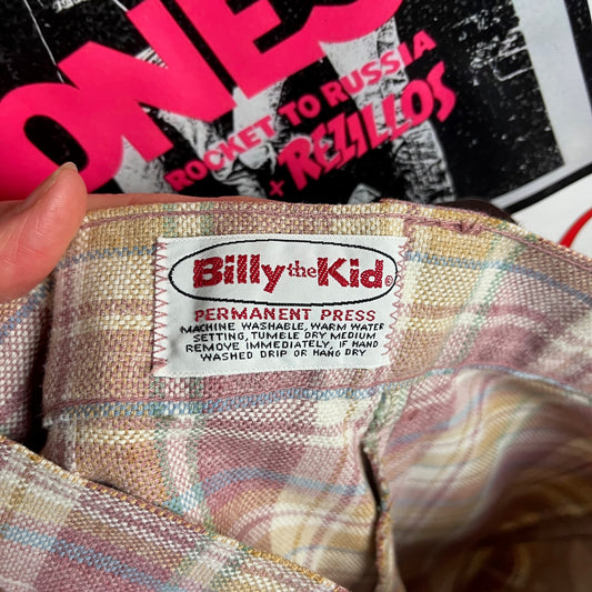 Vintage Toddler Kids Boys Girls Retro 1970s Khaki Pink Plaid Billy the Kid Trouser Pants 4T Ages 3-4