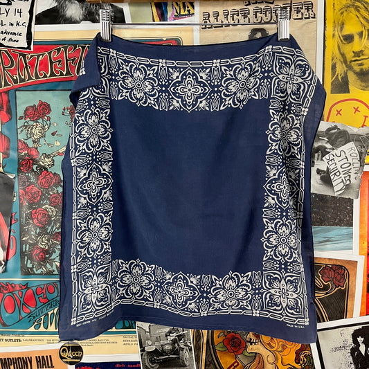 Vintage 50s-60s Indigo Blue White All Cotton Paisley Floral Print Rockabilly Western Fast Color RN 14193 USA Bandana Handkerchief Hanky