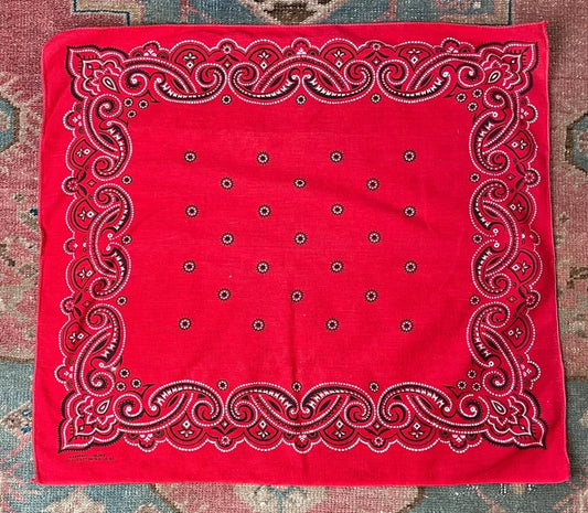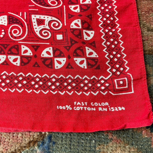 Vintage 60s Red Paisley Dot Print Washfast Colors All Cotton RN 14193 USA Bandana Handkerchief