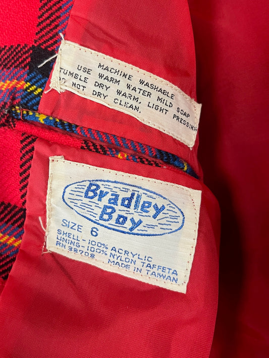 Vintage Boys Kids 70s Red Plaid Bradley Boy Single Breasted Blazer Suit Coat Jacket Ages 5-6 Retro Christmas Holiday