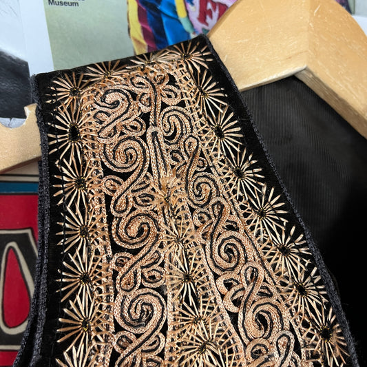 Vintage Toddler Kids 70s Black Gold Velvet Boho Hippie India Afghan Vest 3T