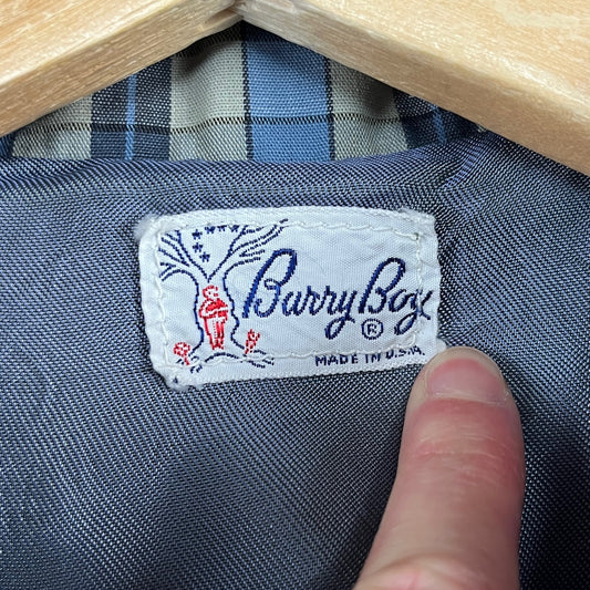 Vintage Toddler Boys Kids 1960s Taupe Blue Plaid Print Barry Boy Single Breasted Blazer Jacket 4T USA