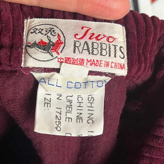 Vintage Toddler Kids 60s-70s Maroon Corduroy Two Rabbits Jacket 2T