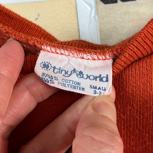 Vintage Toddler Kids 70s Rust Orange Pullover Raglan Sweatshirt Top 12-18 Months