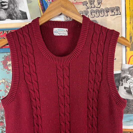 Vintage Boys Kids 70s-80s Solid Plain Red Knit Pullover Jumper Sweater Vest Size 18 Age 12-13 Retro Preppy