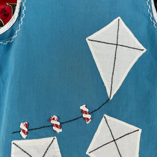Vintage Toddler Girls Kids 60s Blue Kites Stitched Novelty Trapezoid Dress 2T-3T Retro Mod