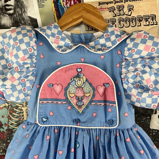 Vintage Toddler Girls Kids 90s Daisy Kingdom Bunny Bears Cats Love Hearts Puff Sleeve Dress 4T