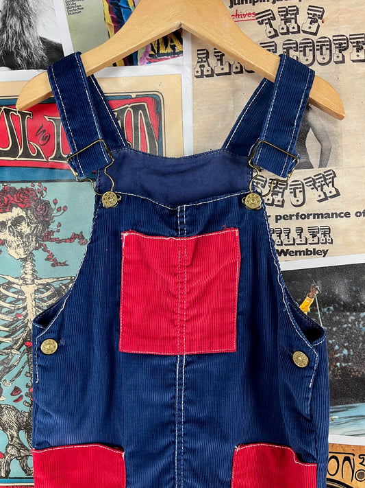 Vintage Toddler Kids 70s-80s Blue Red Color Block Health-tex Corduroy Overalls 4T