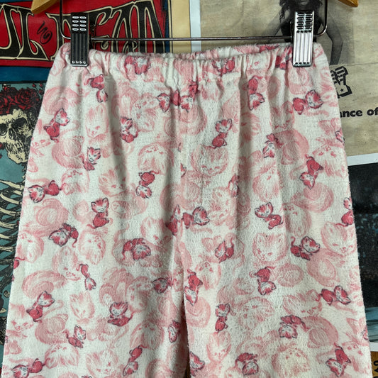 Vintage Girls Kids Retro 60s Pink White Kitty Cats Novelty All Over Print Elastic Waist Pajama Pant Size 6X-7