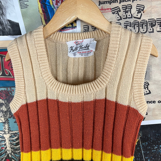 Vintage Girls Kids 70s Color Block Knit Fall Fashion Scoop Neck Sweater Vest Top Size 6 Age 5-6 Retro