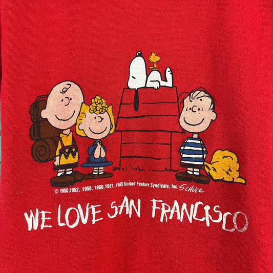 Vintage Toddler Kids 80s Peanuts Snoopy Cartoon We Love San Francisco California Souvenir Graphic T-Shirt 3T Slim