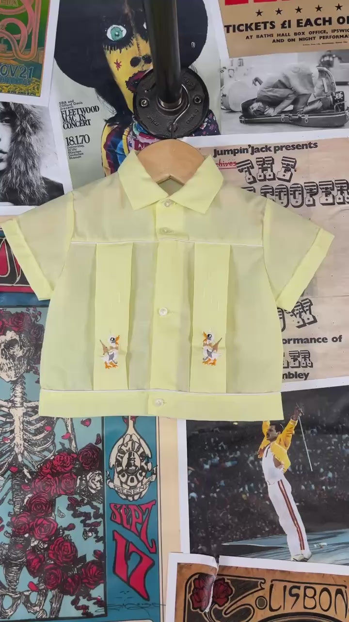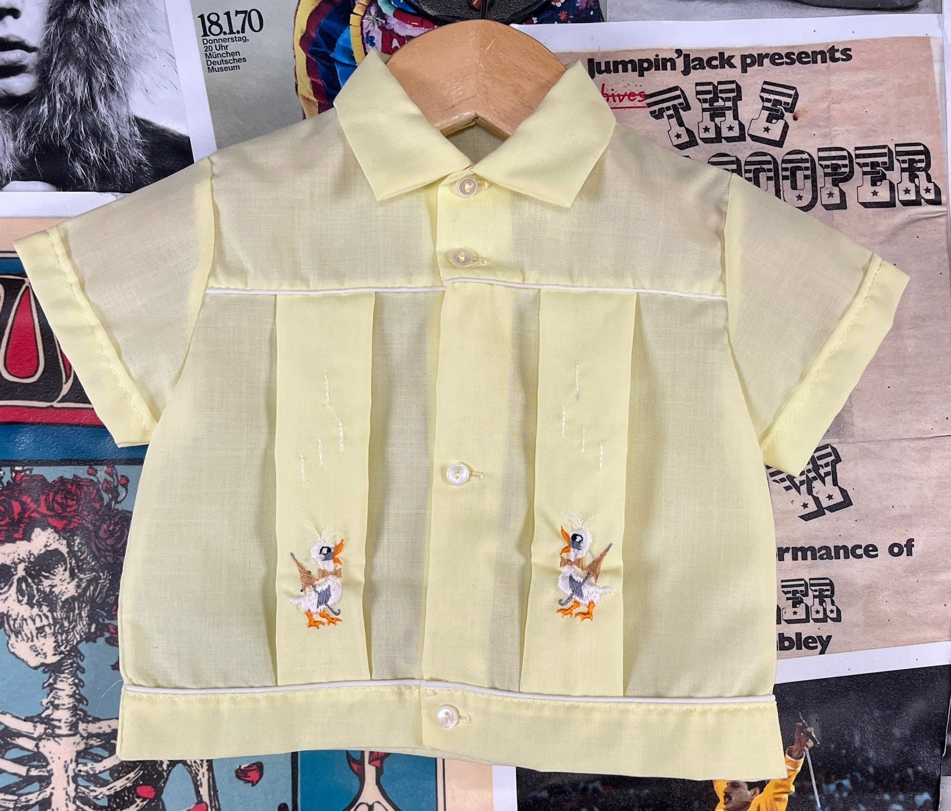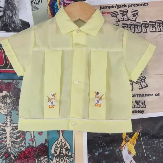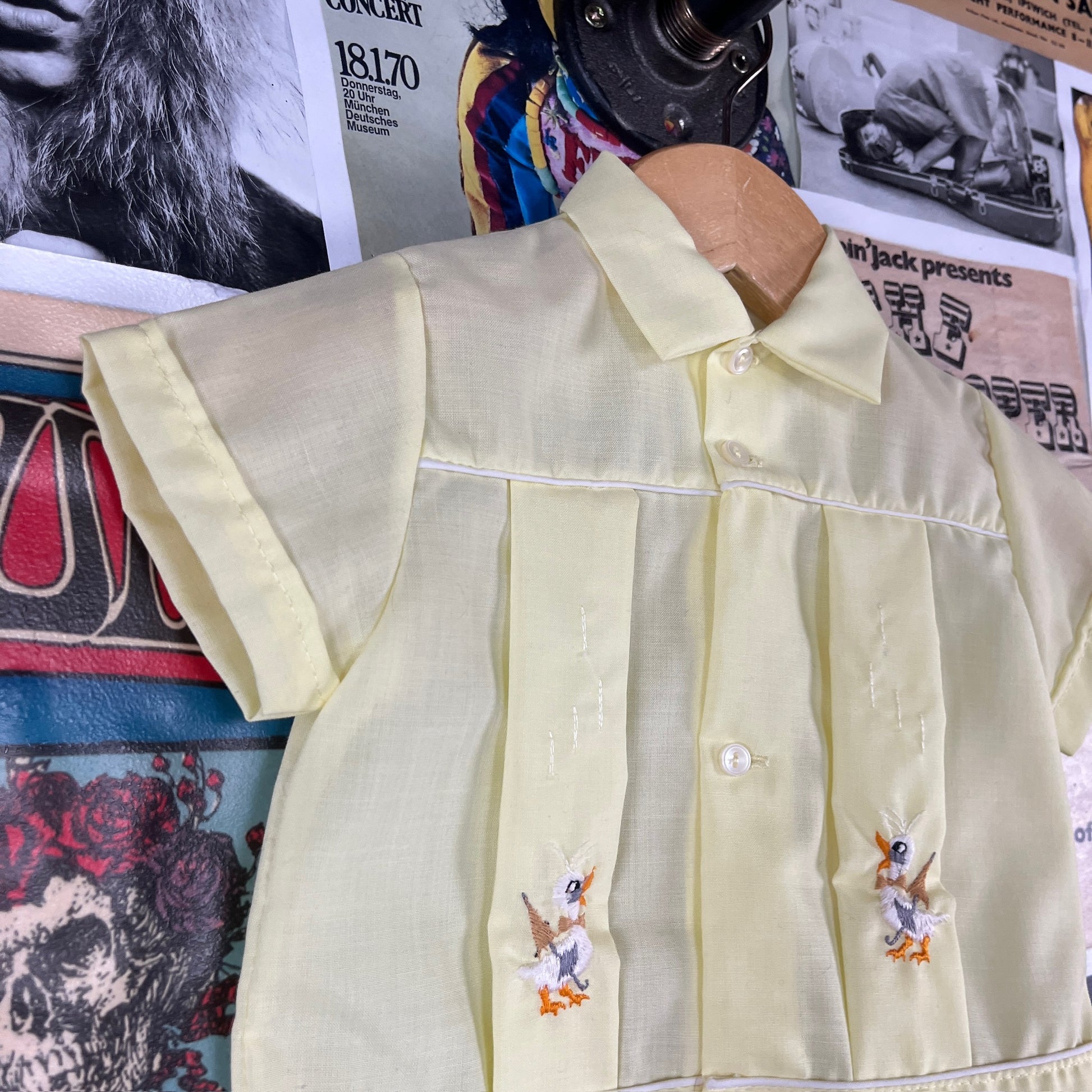 Vintage Baby Boy 50s-60s Yellow Embroidered Duck Playsuit Set 6-9M