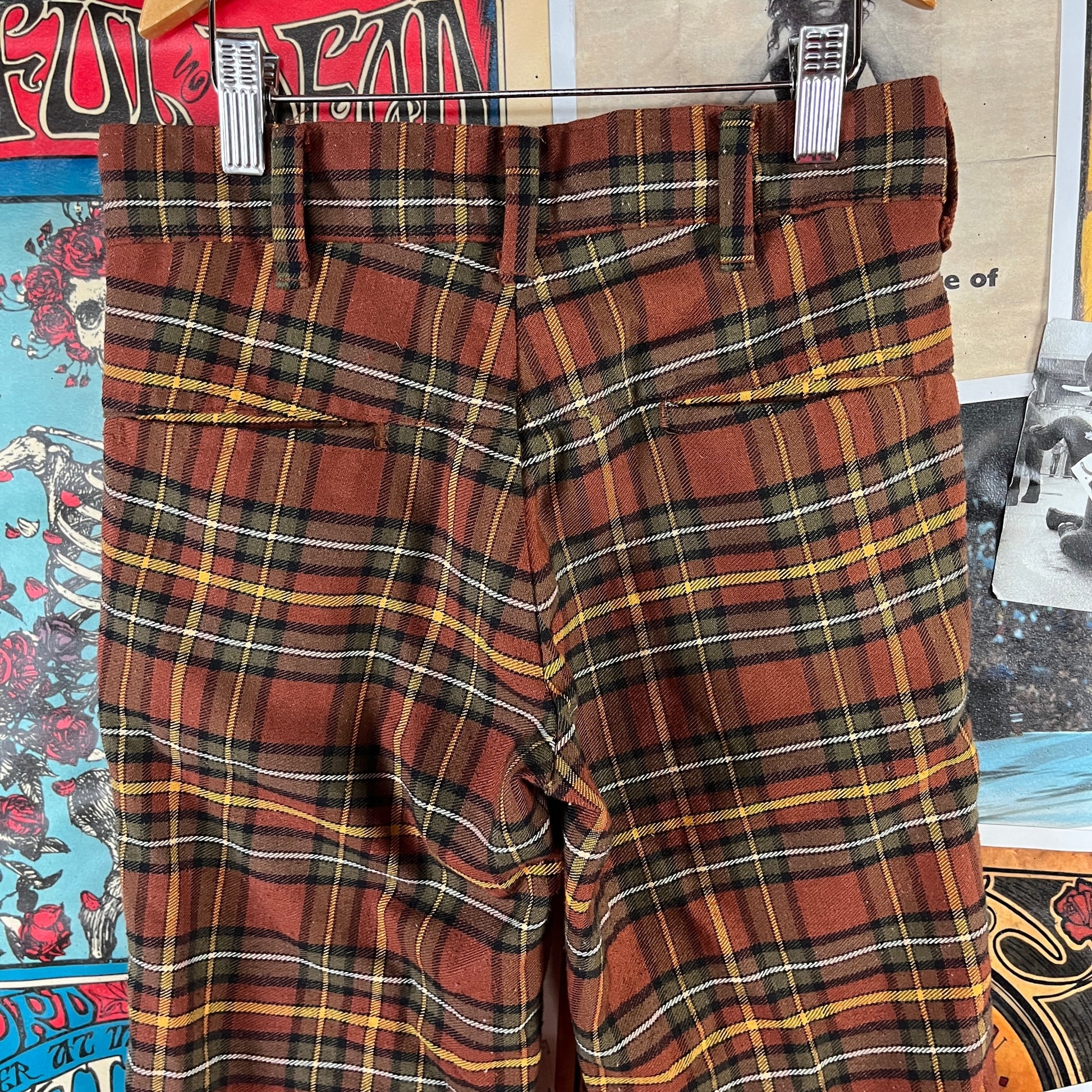 Vintage Boys 70s Brown Plaid Sears Trouser Pants Ages 6-7