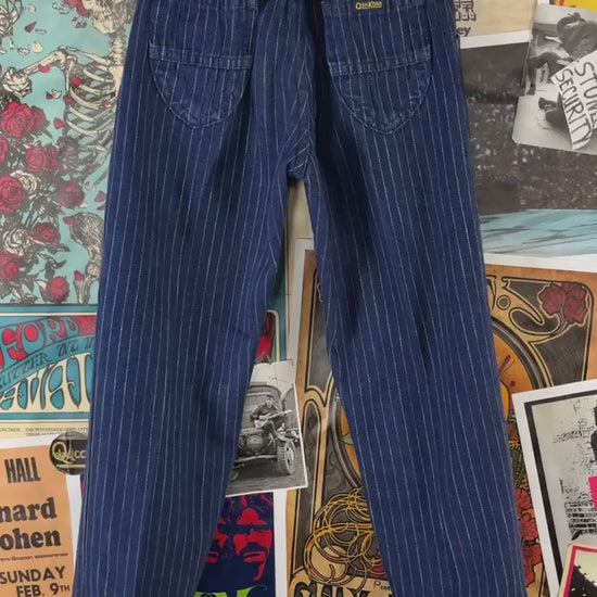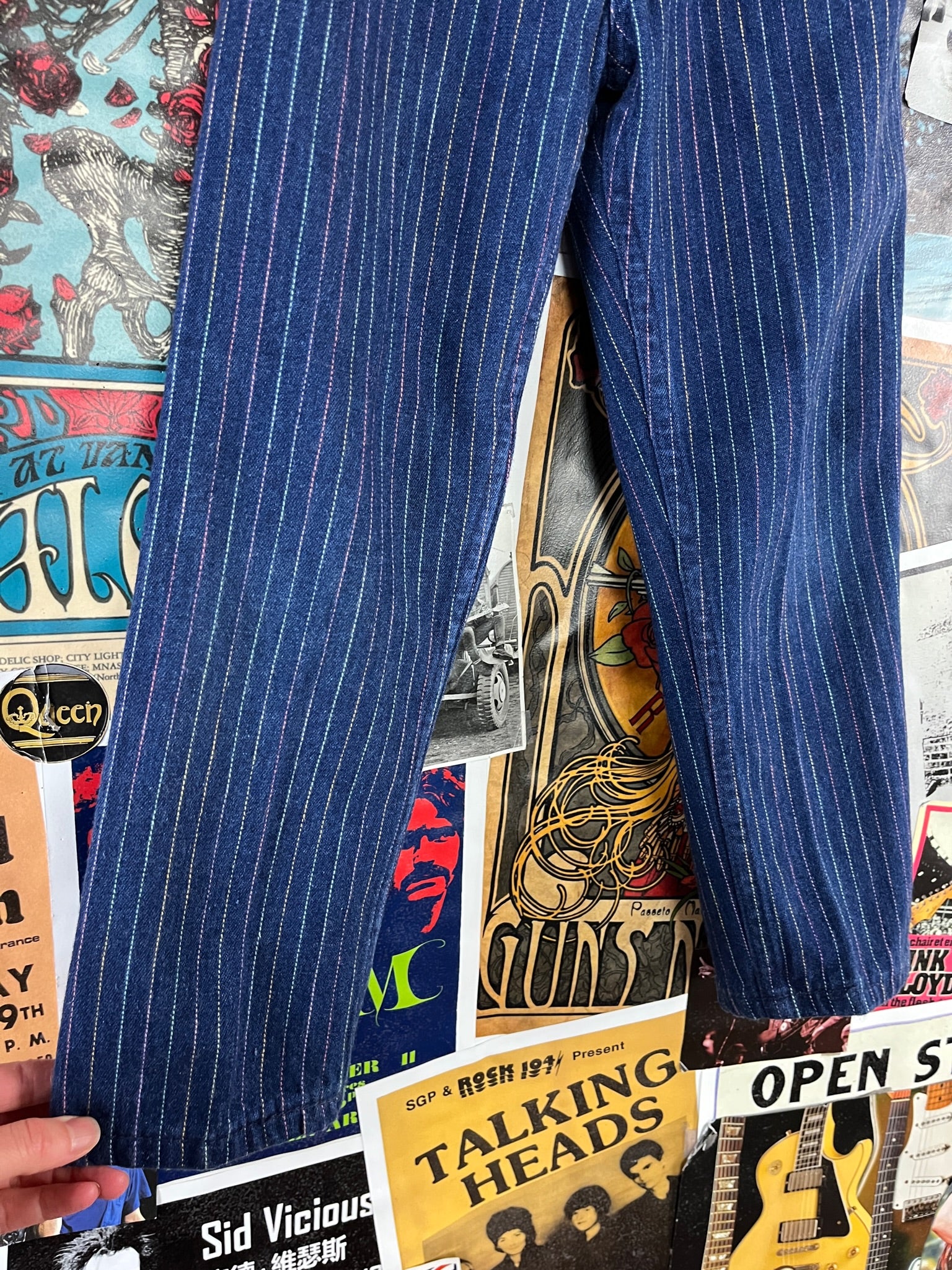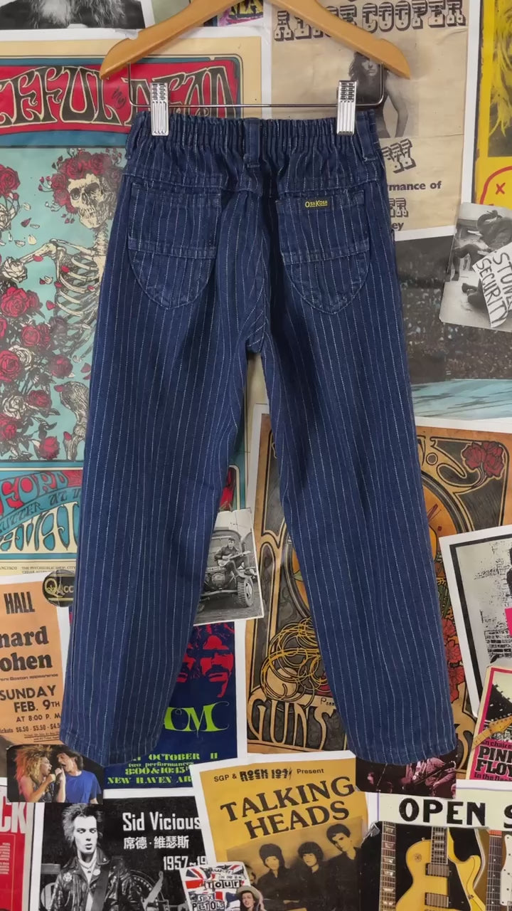 Vintage Toddler Girl Kids 80s Rainbow Pintripe Denim OshKosh B'Gosh Elastic Waist Denim Jeans 4T