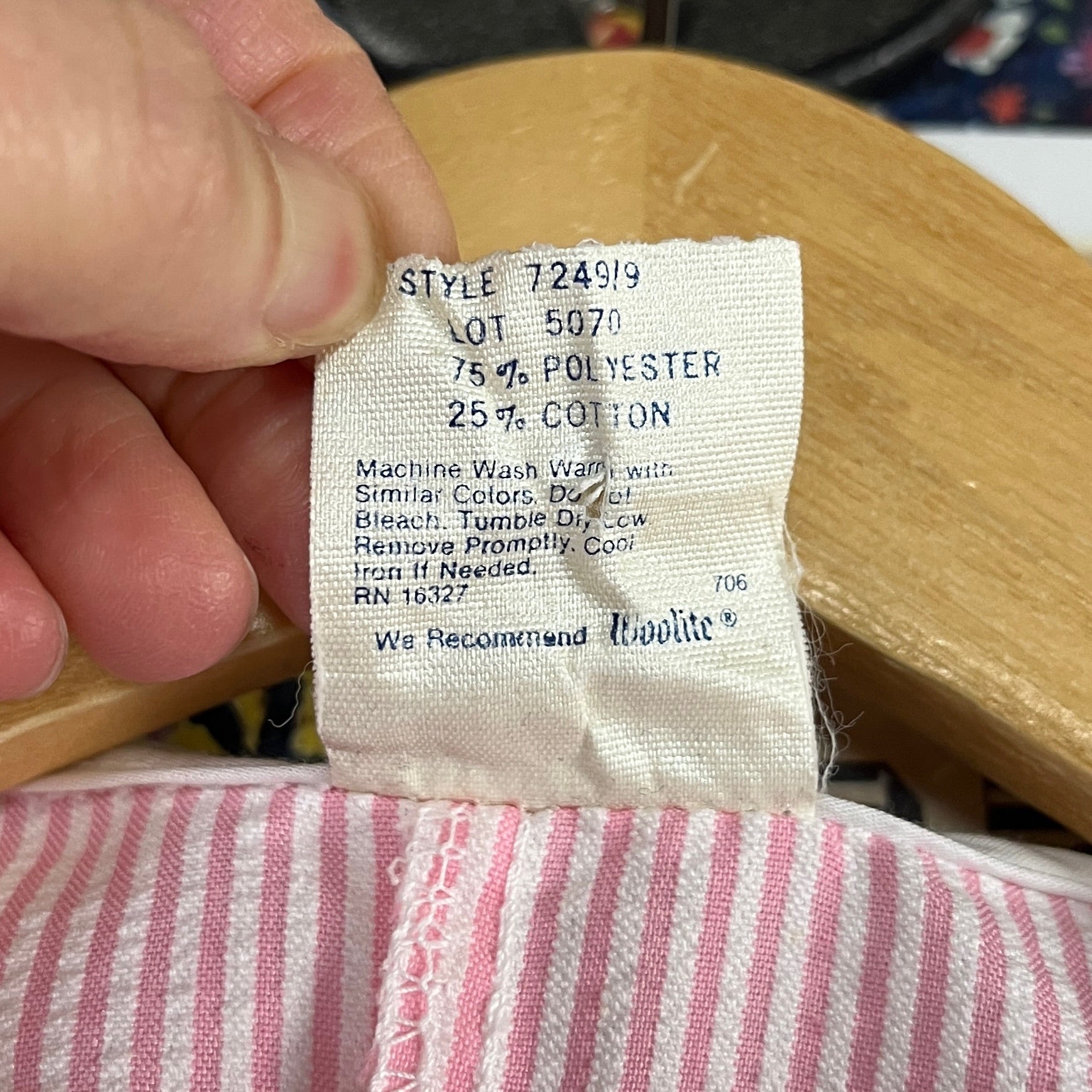 Adorable vintage toddler girls 1970s-80s light baby pink and white short striped sleeve seersucker striped nautical style jumpsuit by Good Lad of Philadelphia. Features an elastic waist band, eyelet lace trimmed sailor shawl collar and elastic ankle cuffs. Snaps at the legs and zips up the front. Is tagged size 18 months, but please check measurements as this is vintage. Made of 75% polyester and 25% cotton in the USA. The inner bib is removable. In great preowned condition.