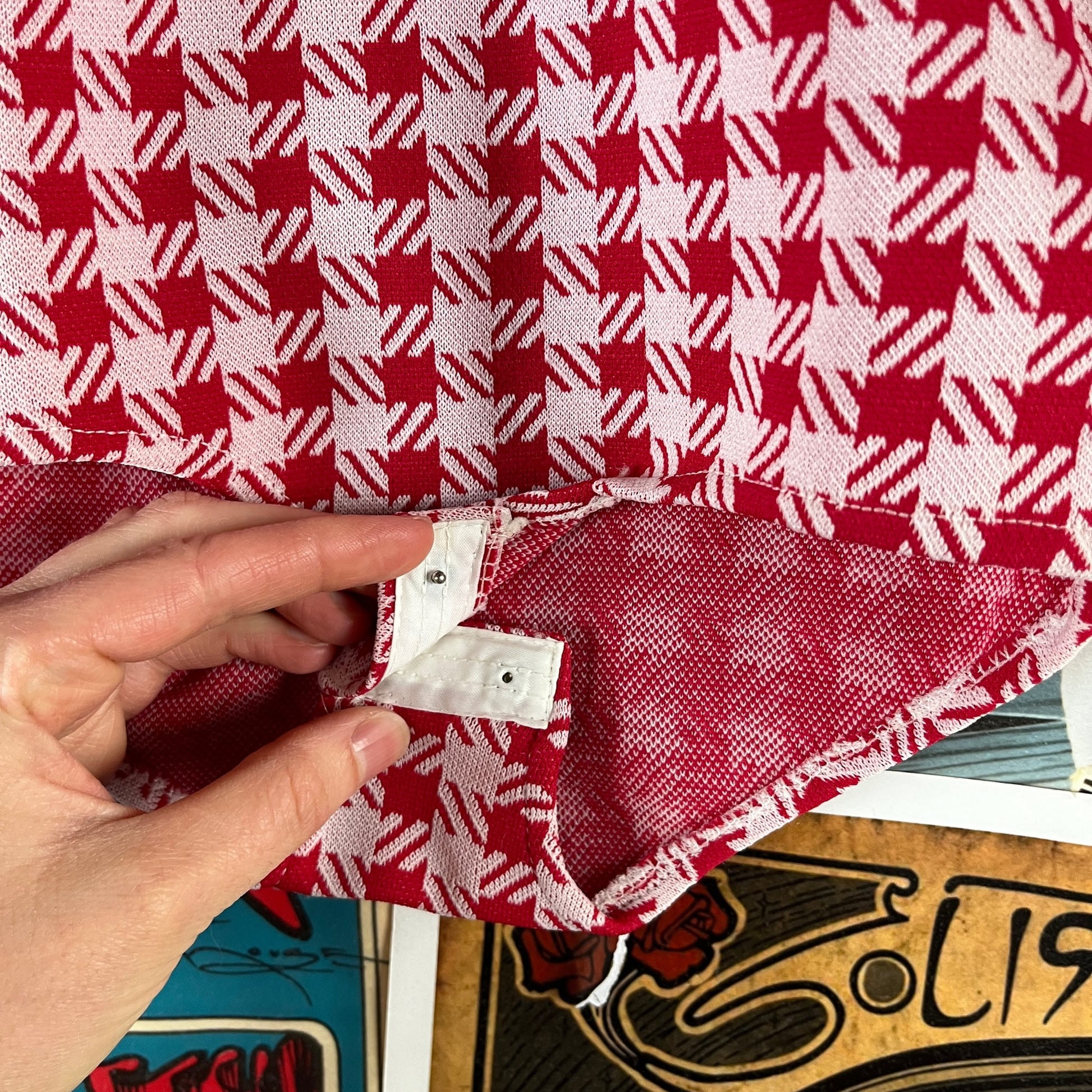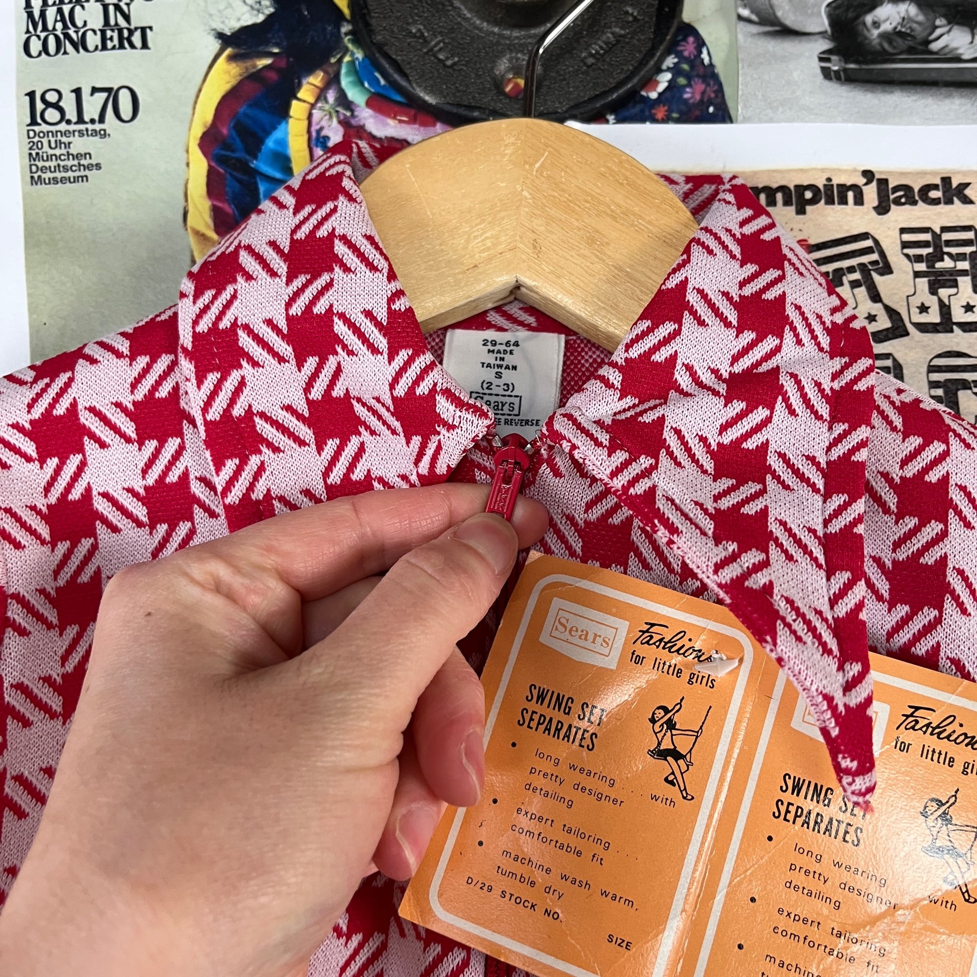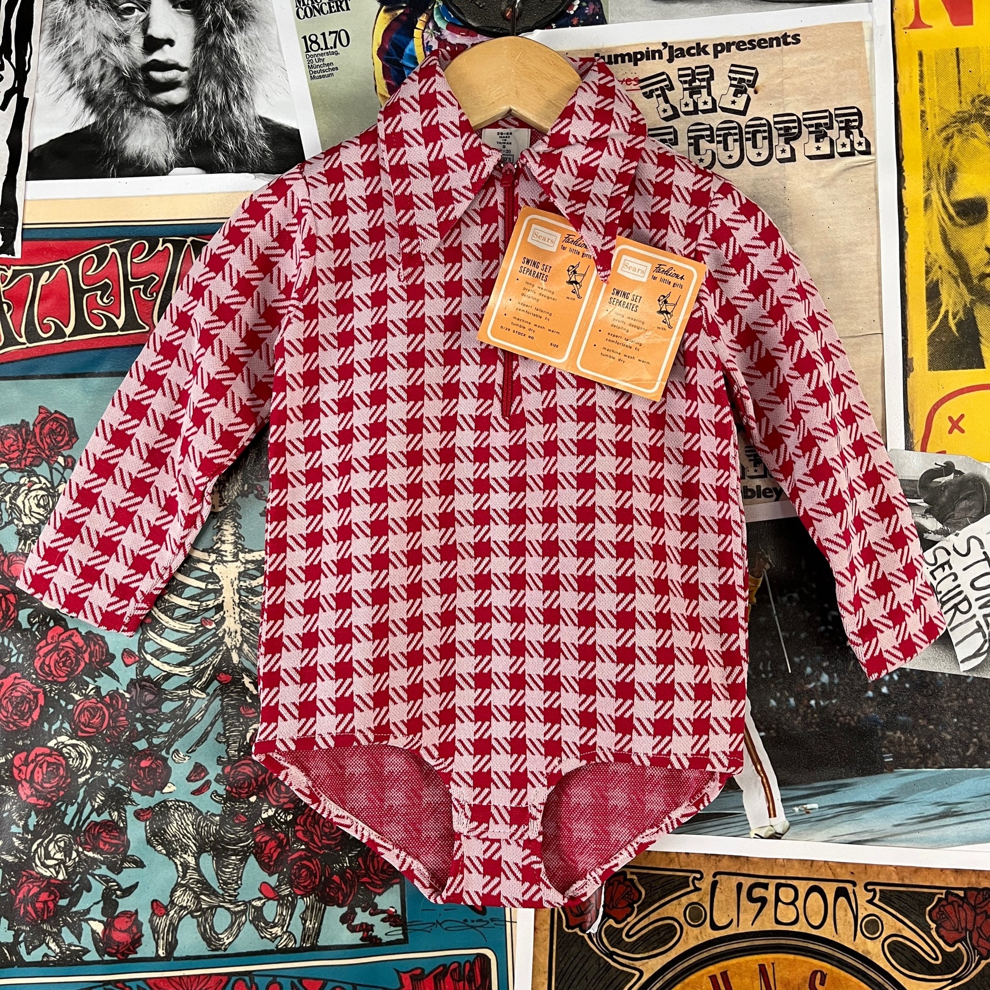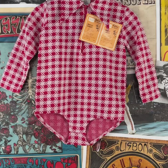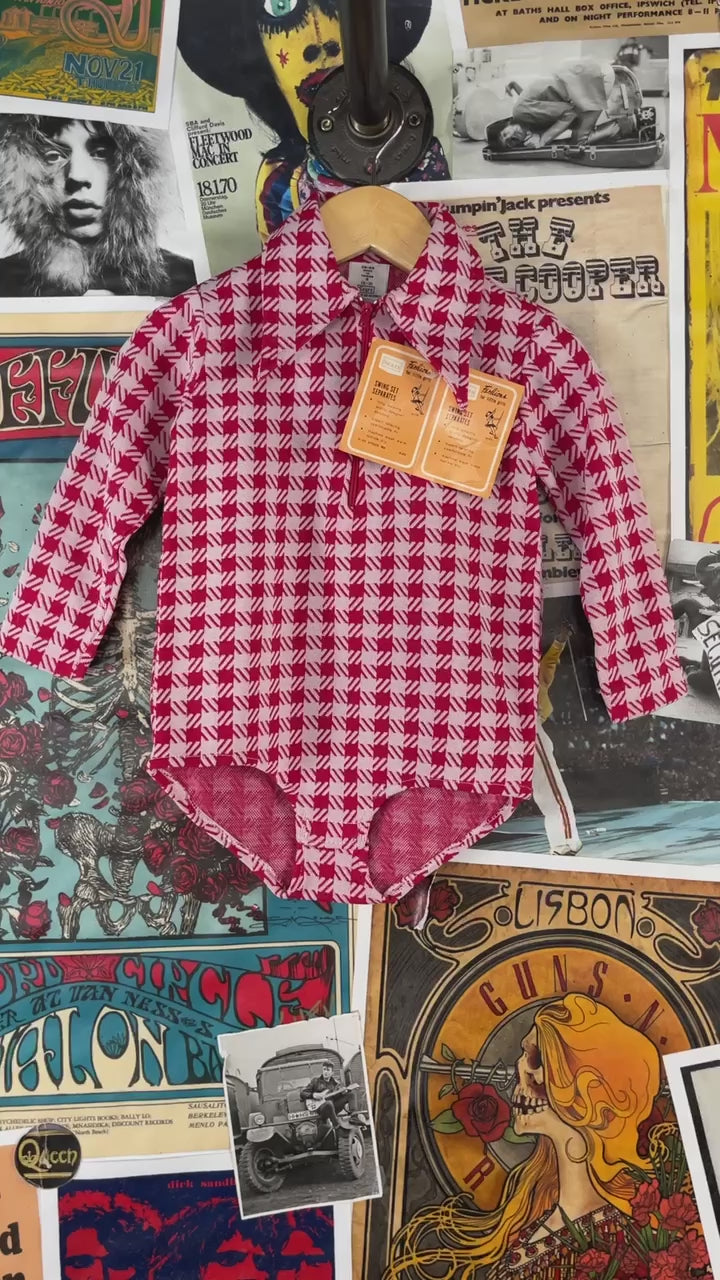 Vintage Toddler Girls Kids Retro Deadstock 70s Red White Check Plaid Sears Roebuck Swing Set Separates Long Sleeve Collared Onesie Bodysuit 2T