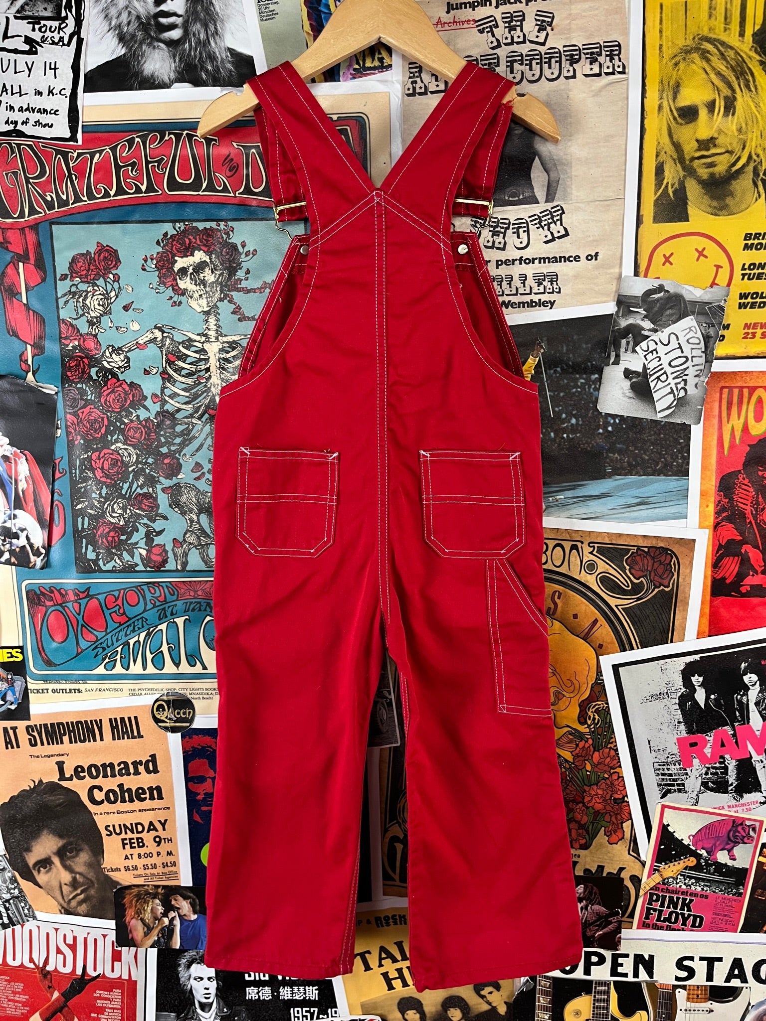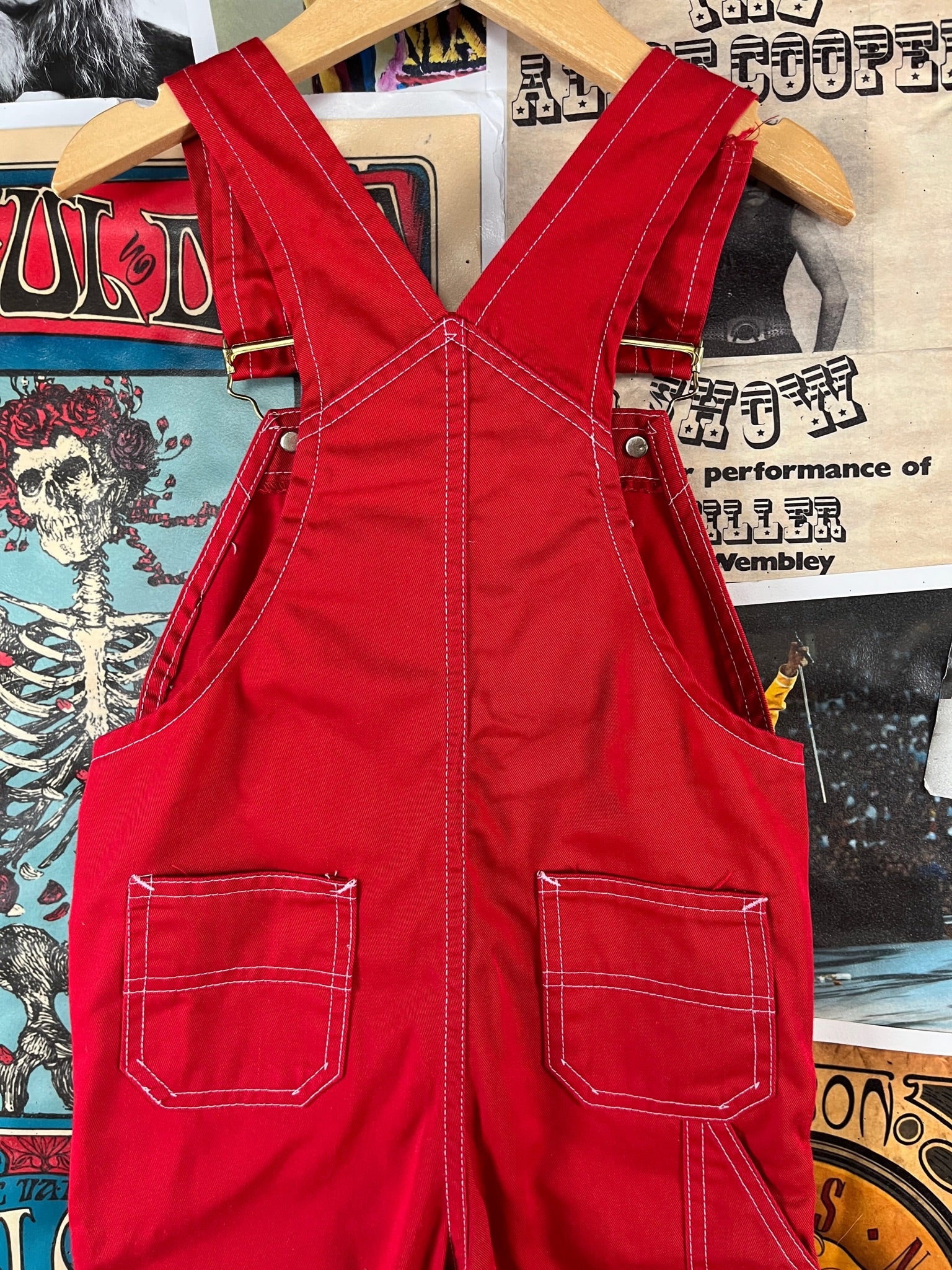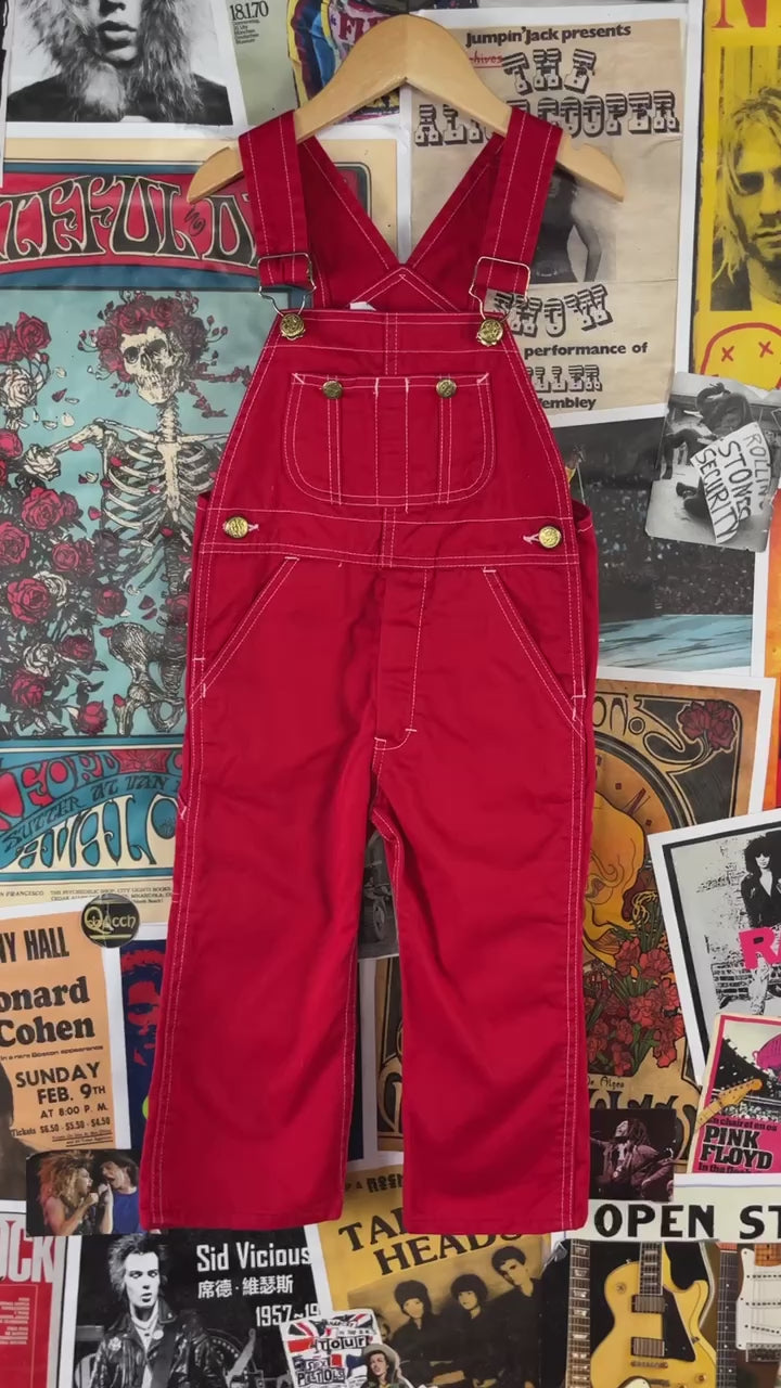 Vintage Toddler Kids 70s-80s Plain Red Sears Bib Overalls 3T